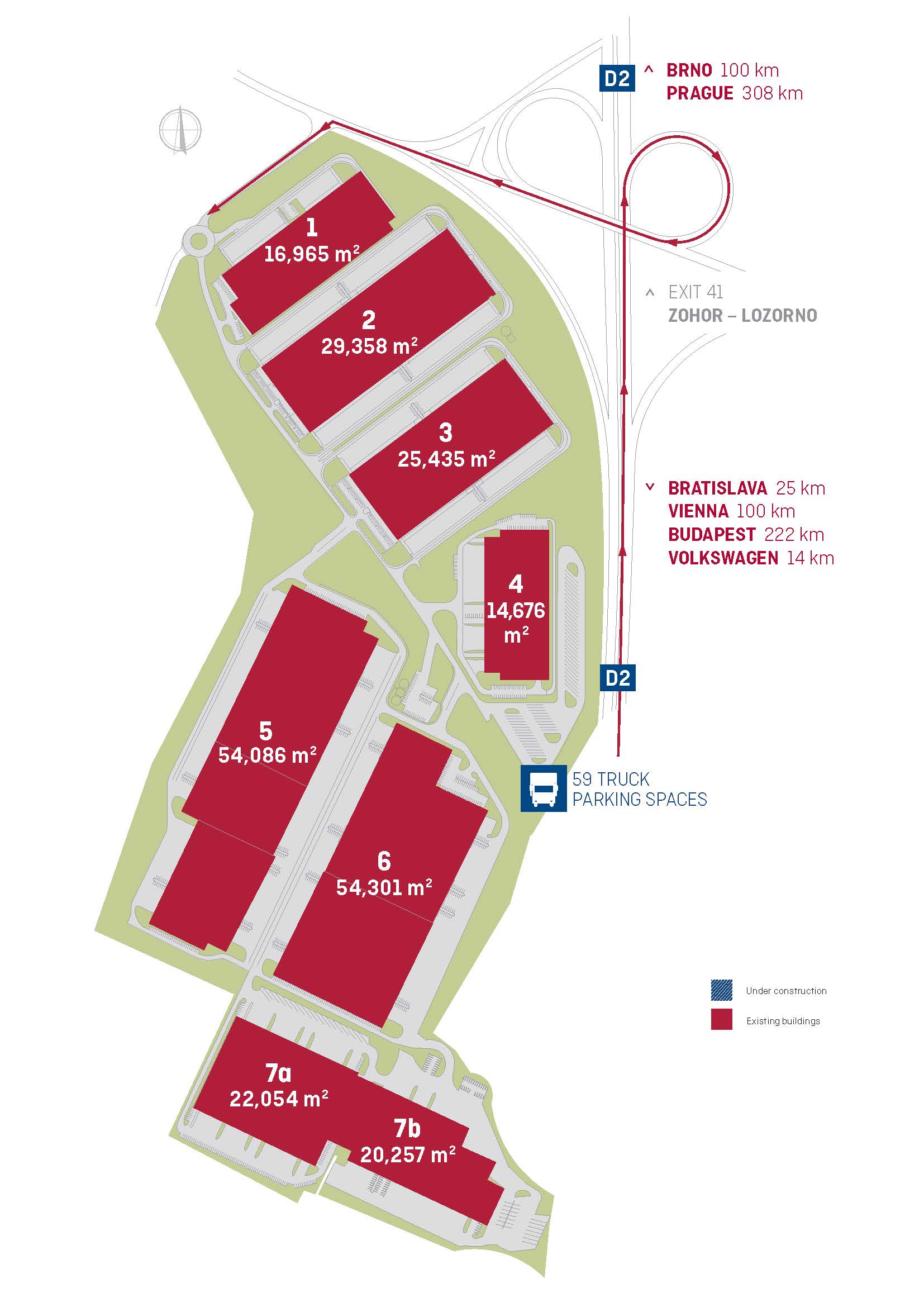 P3 park Bratislava D2 liegt etwa 15 Minuten nordwestlich von Bratislava an der Autobahn D2 – an der Ausfahrt Lozorno. Die Autobahn verbindet die Städte Prag – Bratislava – Budapest miteinander. Das Objekt ist mit den Bussen der öffentlichen Verkehrsbetriebe von Bratislava gut zu erreichen und ist von allen Richtungen aus sehr gut zu sehen. Der Park, dessen Errichtung im März 2006 begann, umfasst derzeit bereits 7 von insgesamt 8 geplanten Gebäuden. Angesiedelt haben sich hier vor allem Unternehmen wie Schnellecke, Whirlpool, Möbelix, Ingram Micro, HBPO, Faurecia, PTG.