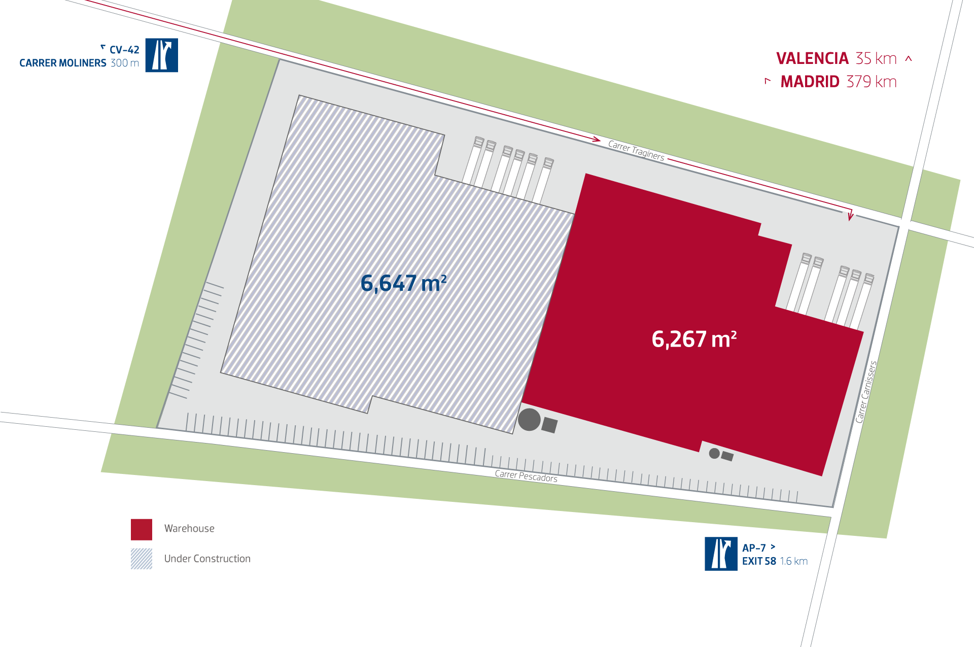 Valencia, located in the center of the east coast of Spain, is an established location for industrial activity and easily accessible to other cities across the country. P3 Algemesí is an industrial property with a total built area of 6,722 m2, with 5,722 m2 on the ground floor and 546 m2 on the first floor. The steel structure features an insulated cold storage panel, which was the first cold storage facility in the P3 portfolio.