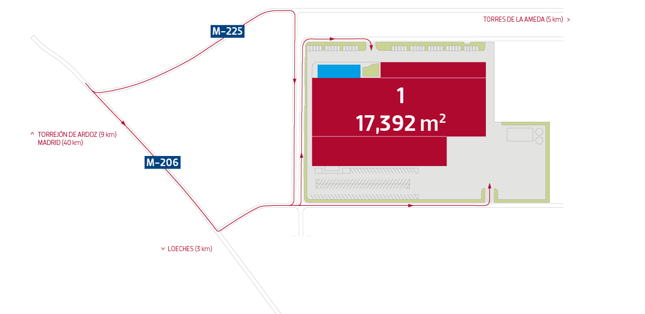 La propiedad es una nave industrial ubicada en el municipio de Loeches en la provincia de Madrid, en el Polígono Industrial Gestesa una zona industrial secundaria a unos 30 km al sur de la ciudad de Madrid entre las vías de acceso A-2 y A-3. La zona de la nave destinada a uso industrial ocupa una superficie construida de 11.270m², y está dividida según los distintos procesos de producción. El área de servicios de fábrica y personal ocupa una superficie construida de 1.194,70m² e incluye dependencias como aseos, comedor, zonas de formación y laboratorios.