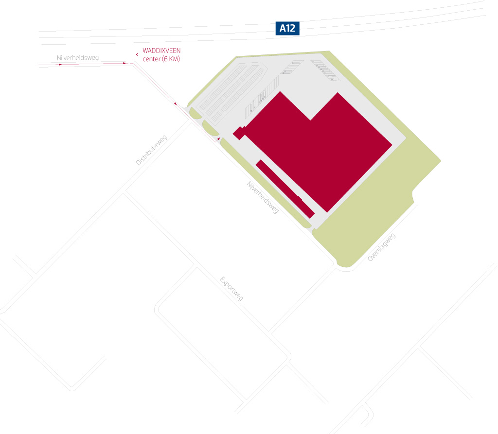 P3 Waddinxveen está situado en el centro de la "Randstad", un área urbanizada de los Países Bajos que incluye las cuatro ciudades más grandes del país: Amsterdam, Rotterdam, Haag y Utrecht. La propiedad se encuentra junto a la autopista A12, aproximadamente 1 km al oeste de la intersección de la A12 y la A20 entre Rotterdam y Utrecht. La nave se encuentra a unos 15 km de Rotterdam, a 20 km del Haag, a 30 km de Utrecht y a 60 km del aeropuerto de Schiphol. El edificio, es claramente visible desde la autopista A12. La estructura de la nave es de acero con pisos de hormigón, y las paredes exteriores están hechas de paneles de revestimiento de aluminio y con unidades de doble acristalamiento. Las cubiertas planas están acabadas con un revestimiento de bituminosa.