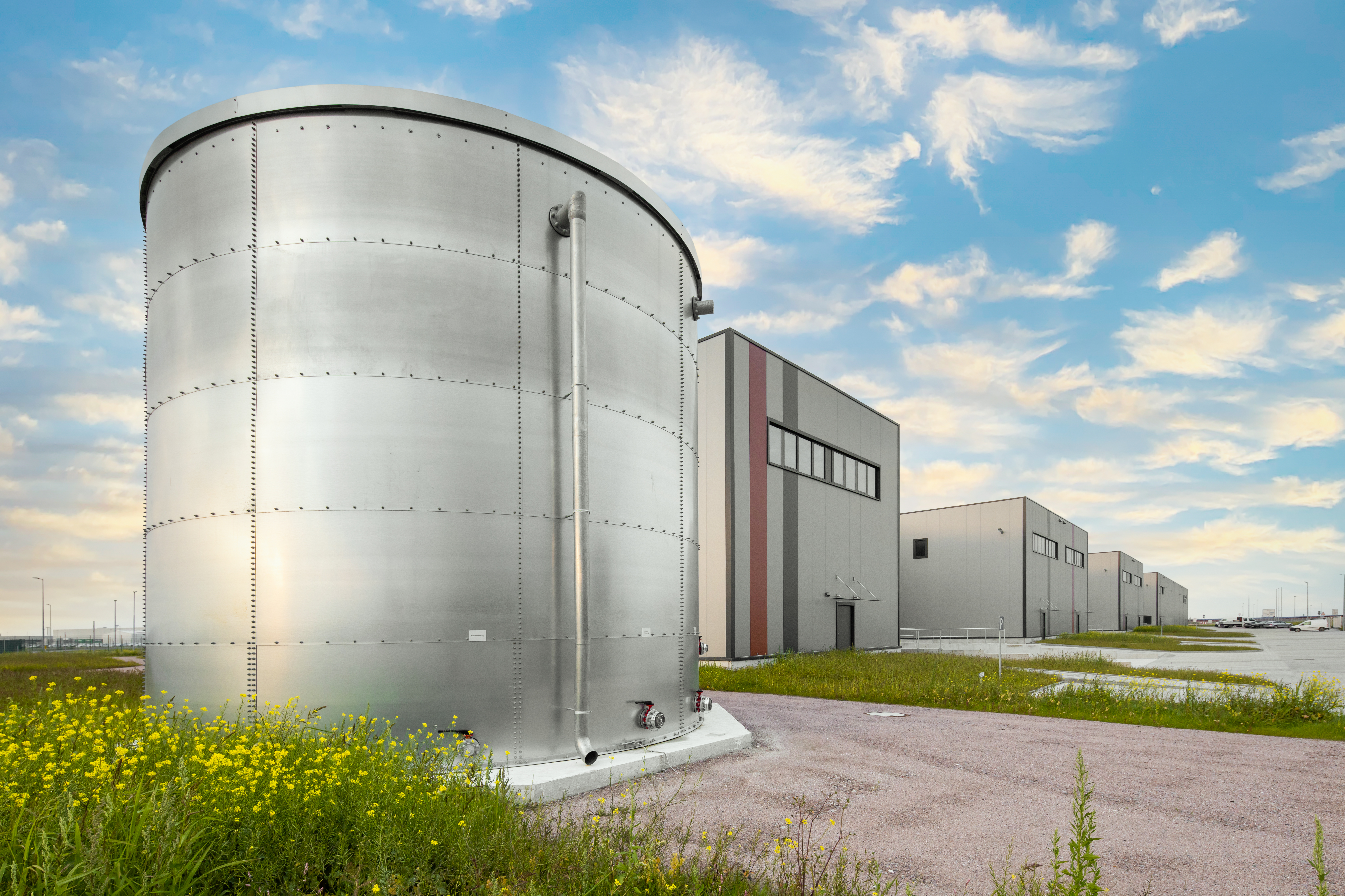 Built to a high environmental standard and certified DGNB Gold, the complex features energy‑efficient LED lighting and a digital monitoring system that tracks resource consumption and environmental conditions in real time. Additional sensors measure loading‑dock and floor‑load stresses, supporting predictive maintenance.