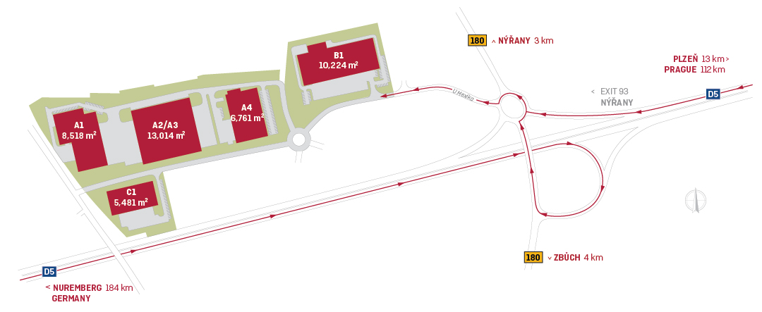 P3 Plzeň is located approximately 12 km from Plzeň city centre, on exit 93 of the D5 motorway (Praha – Plzeň – Germany). The railway station is less than 2.5 km from the site. The park is also accessible by public bus. Construction of this park commenced in 2007 and it consists of five buildings. The largest customers of the park are Ranpak, HP Pelzer, Yazaki Wiring Technologies Czech and WashTec.