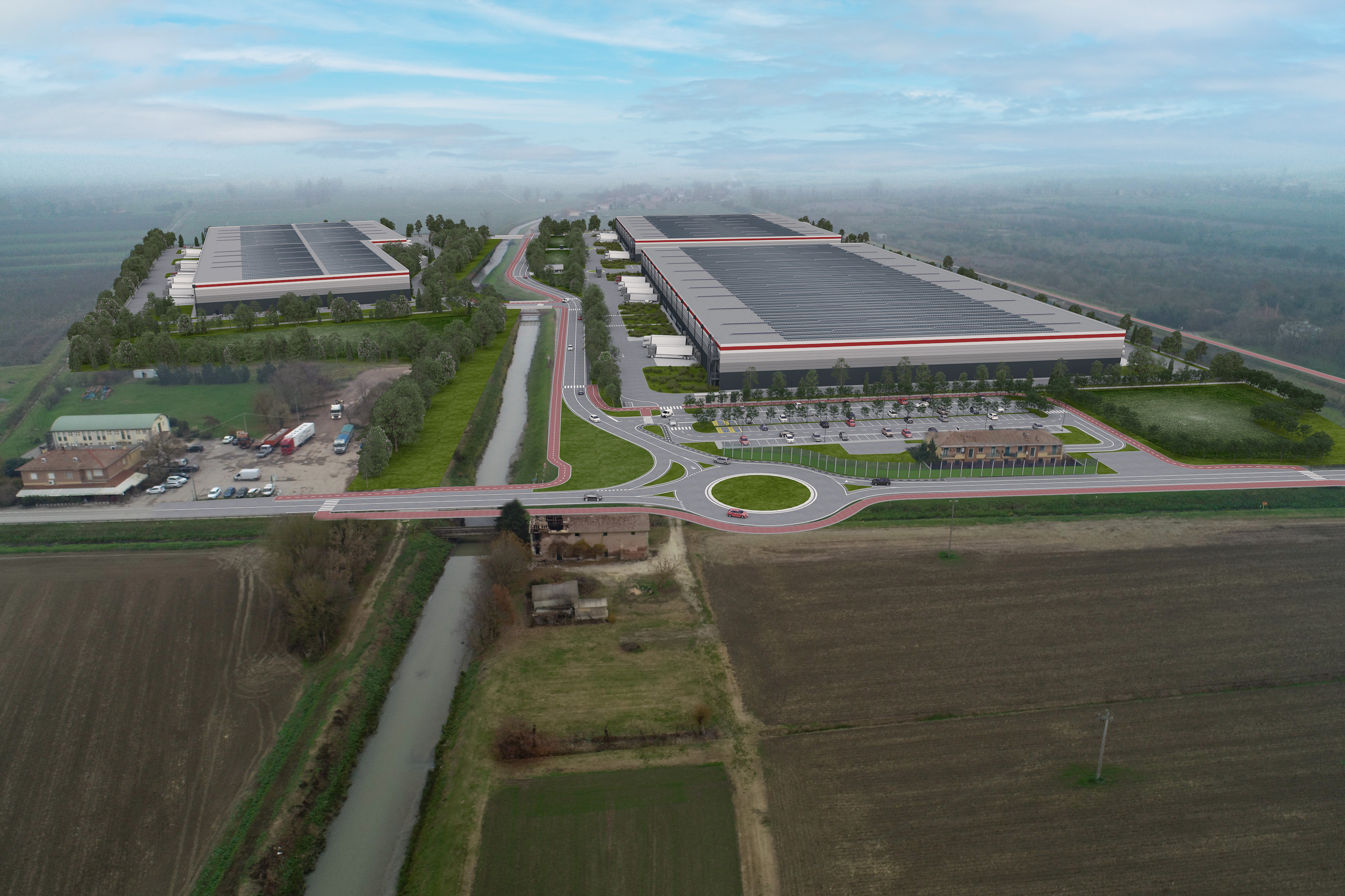 P3 Altedo is a logistic park located in Italy, 20 minutes from Bologna Ring Road. It is conveniently close to the A13 Highway tollbooth and offers excellent accessibility. Ideal for various industries, it has skilled labor availability. Key distances: Bologna Airport (20 mins), Bologna Center (25 mins), Interporto (10 mins), railway station (6 mins), A13 Highway (2 mins), and autobus station (6 mins).