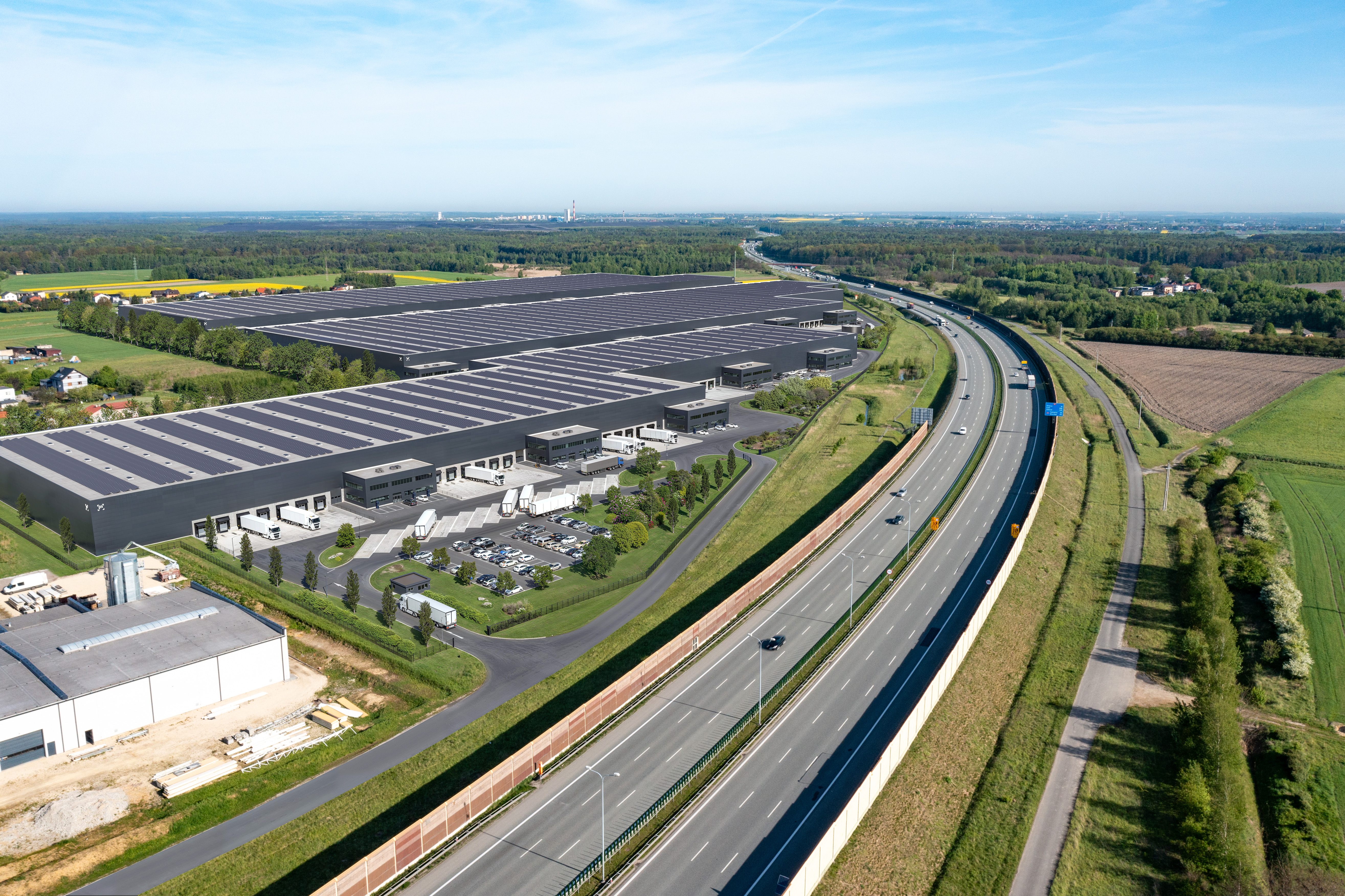A planned new investment P3 Debiensko is located in Upper Silesia south of Katowice Conurbation at A1 highway exit. The property is well connected to main road arteries and makes a great base for domestic and foreign transport. A plot has an area of 22.4 ha, where a modern warehouse & office building with a total area of approx. 164,000 sqm will be built.