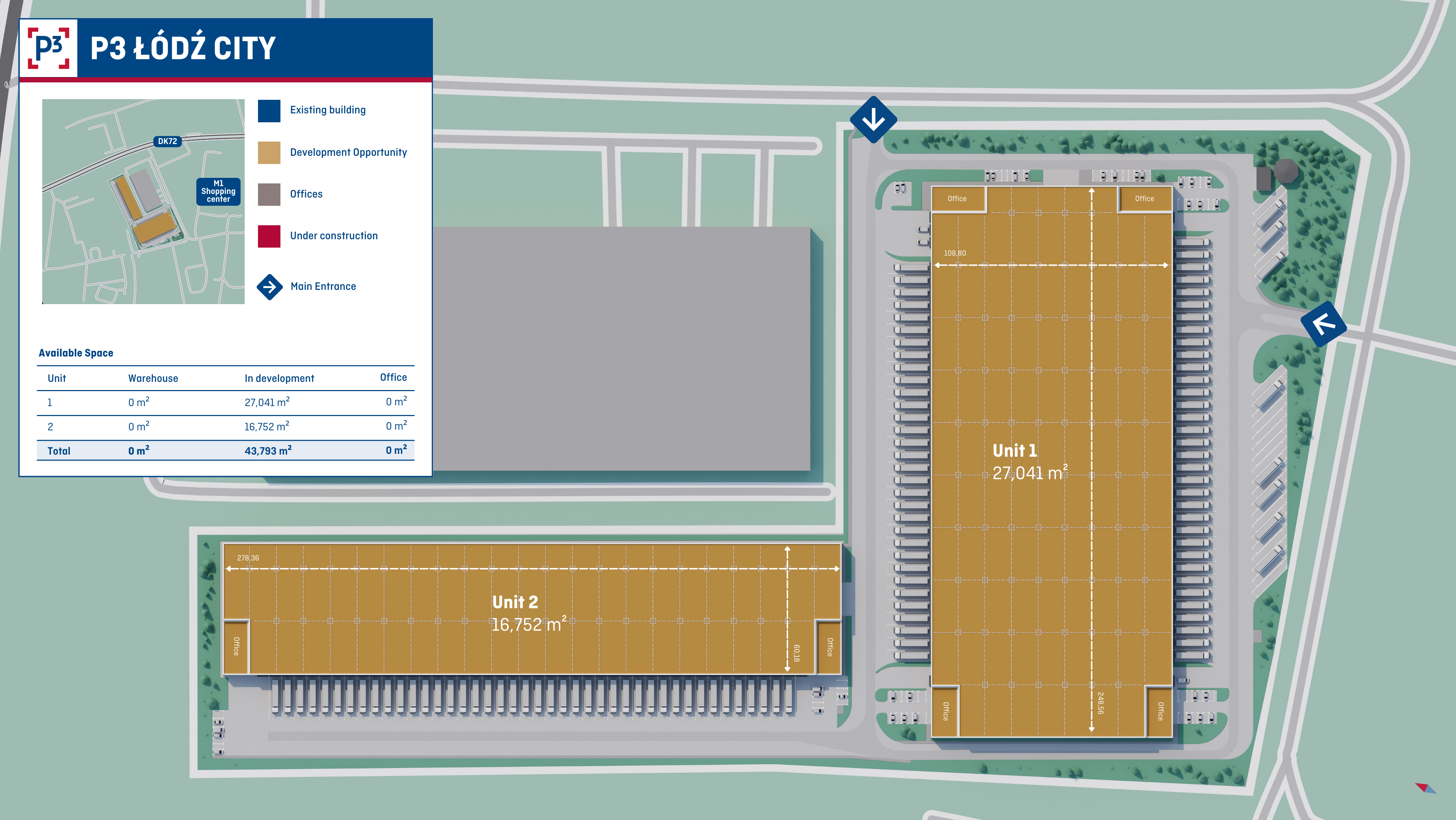 P3 Łódź City is located on Śnieżna Street, east of the city center, in an excellent location for urban and last-mile logistics operations. The site, covering 9.1 hectares, will feature two modern warehouse buildings with a total area of 43,793 m².