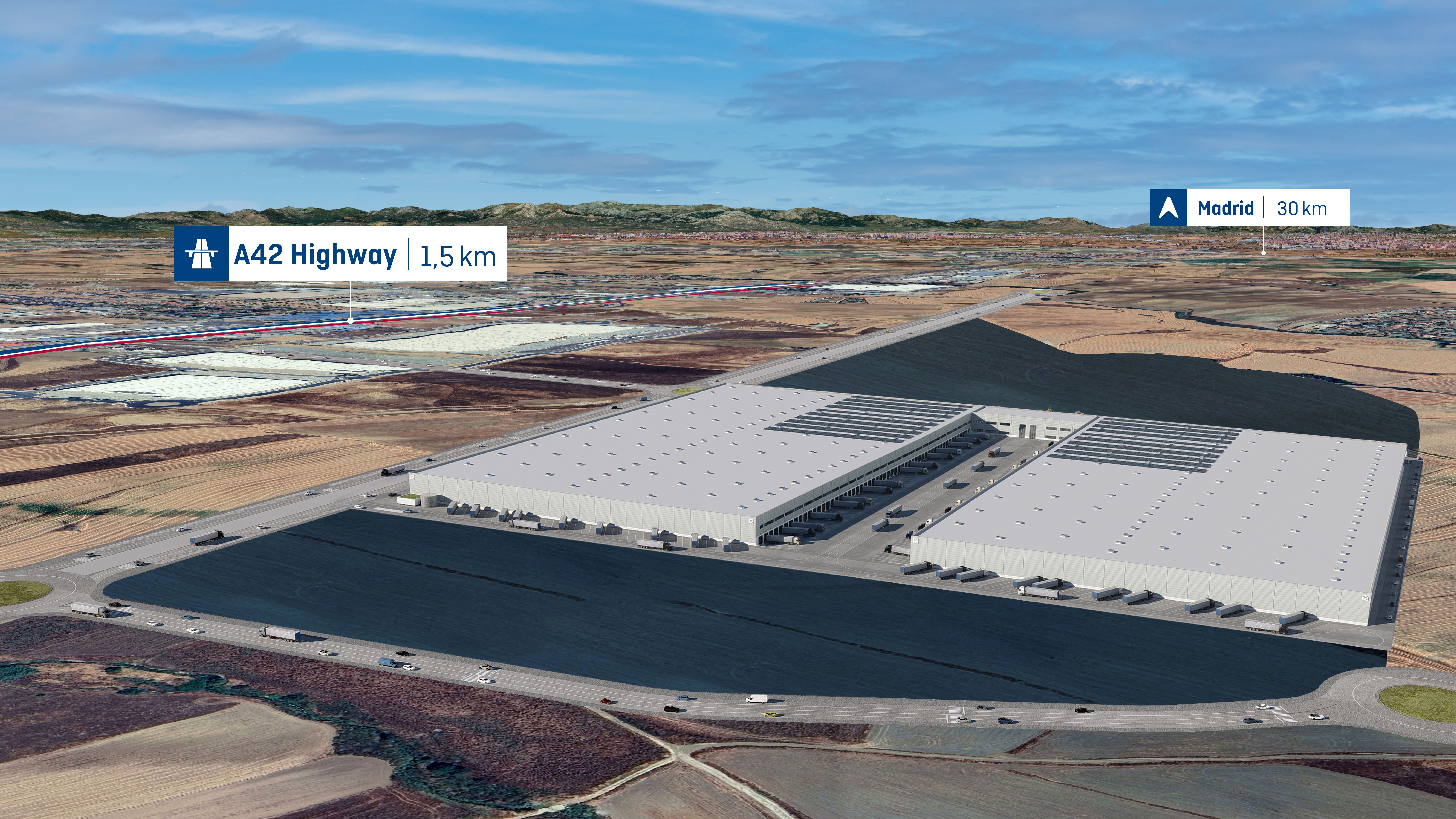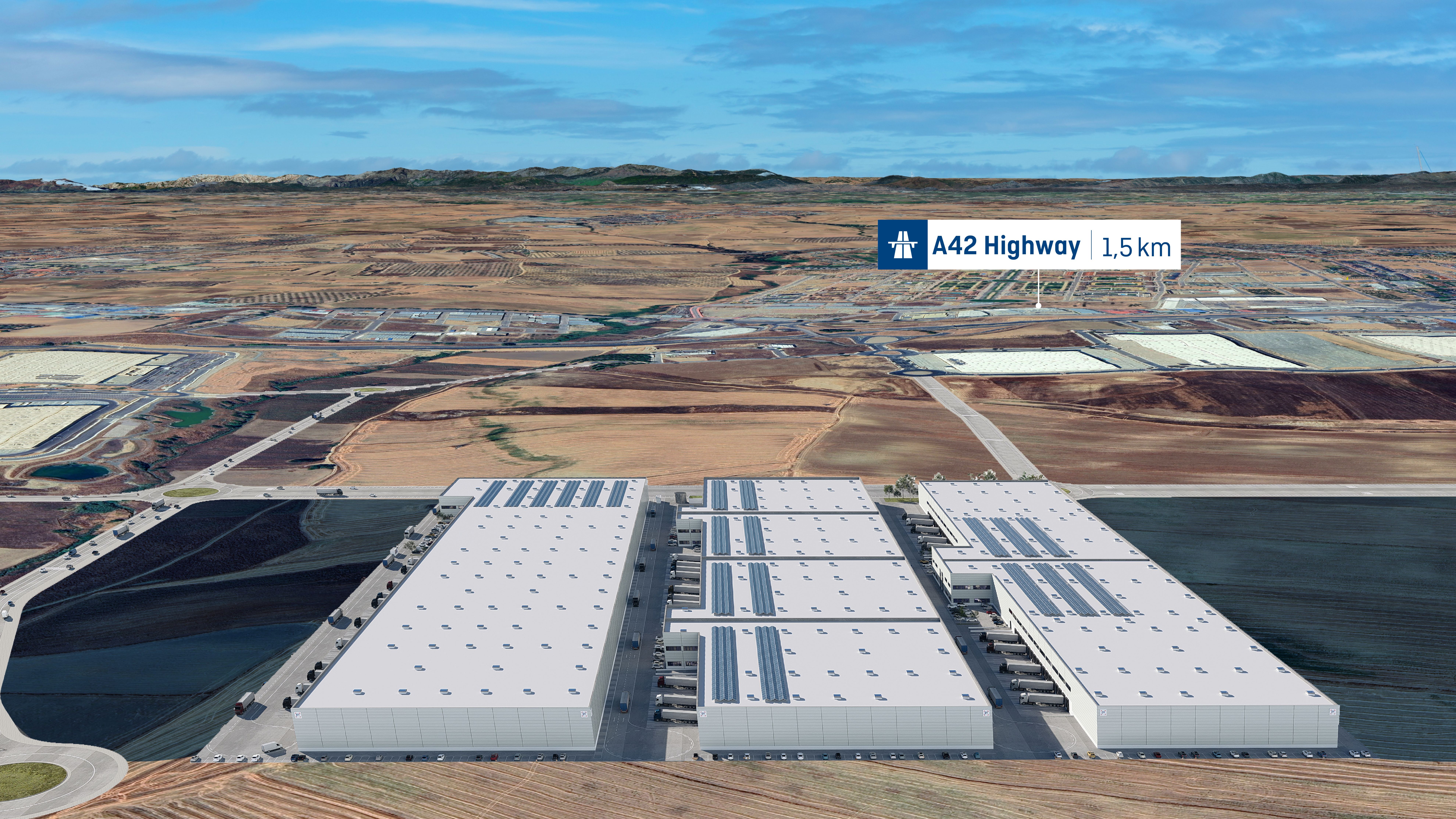 It is a key logistics hub in Spain, located in the 3rd Ring of the Southern Corridor of Madrid, next to the A-42 motorway and 40-min drive to the city center, providing quick and easy access to 90% of Madrid´s population.