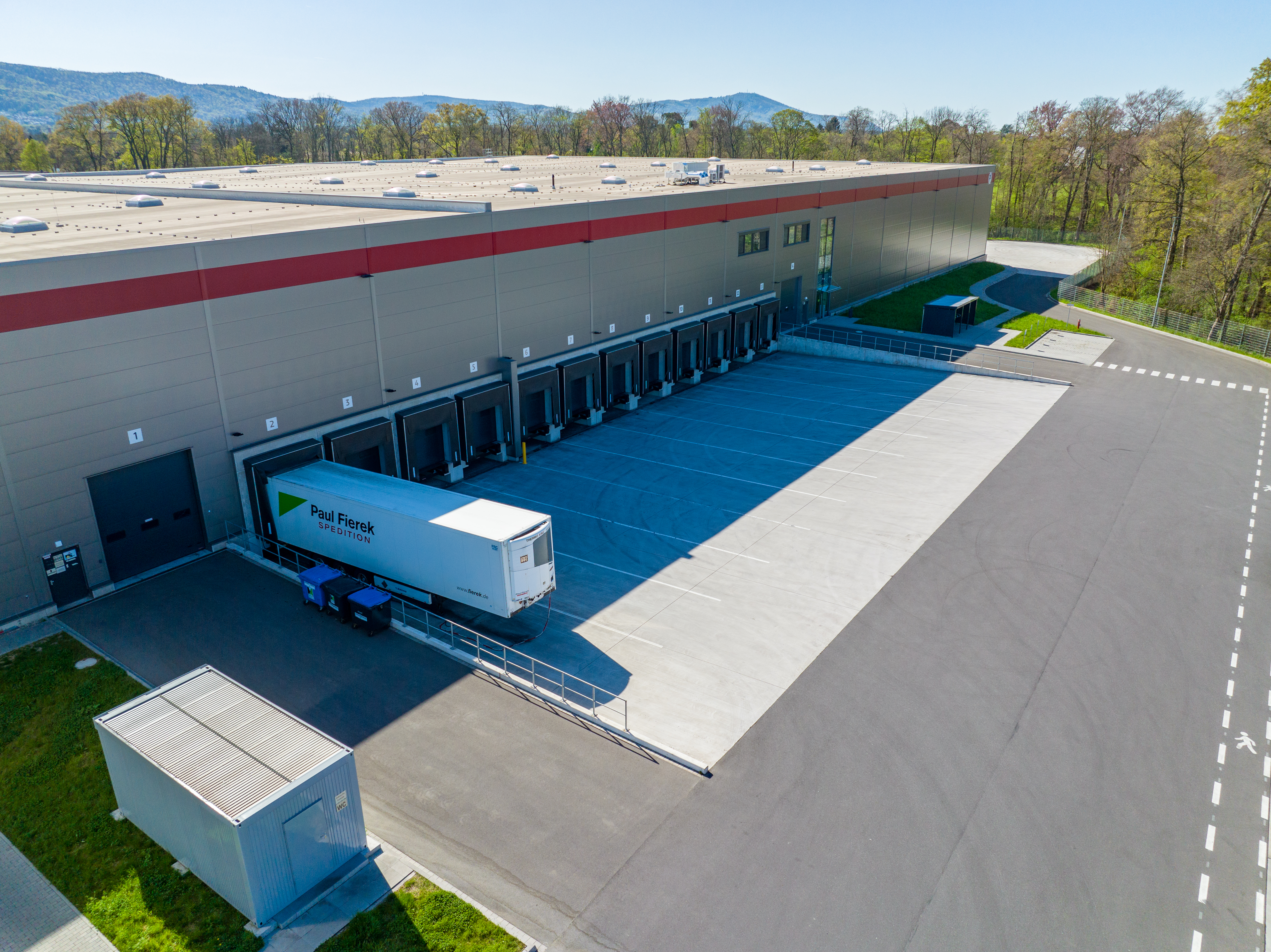 Designed as a regional distribution hub, P3 Pfungstadt offers modern, highly flexible logistics space. The site can be divided into two independent units, making it suitable for a variety of operational setups from regional fulfilment to light production. Each unit features generous clear heights of 10 m, a 12 × 24 m column grid, a floor load capacity of 5.0 t/m², one loading dock per 1,000 m², a “jumbo” dock leveller and a level entrance door. These specifications give occupiers the flexibility to tailor layout and operations to their specific needs.