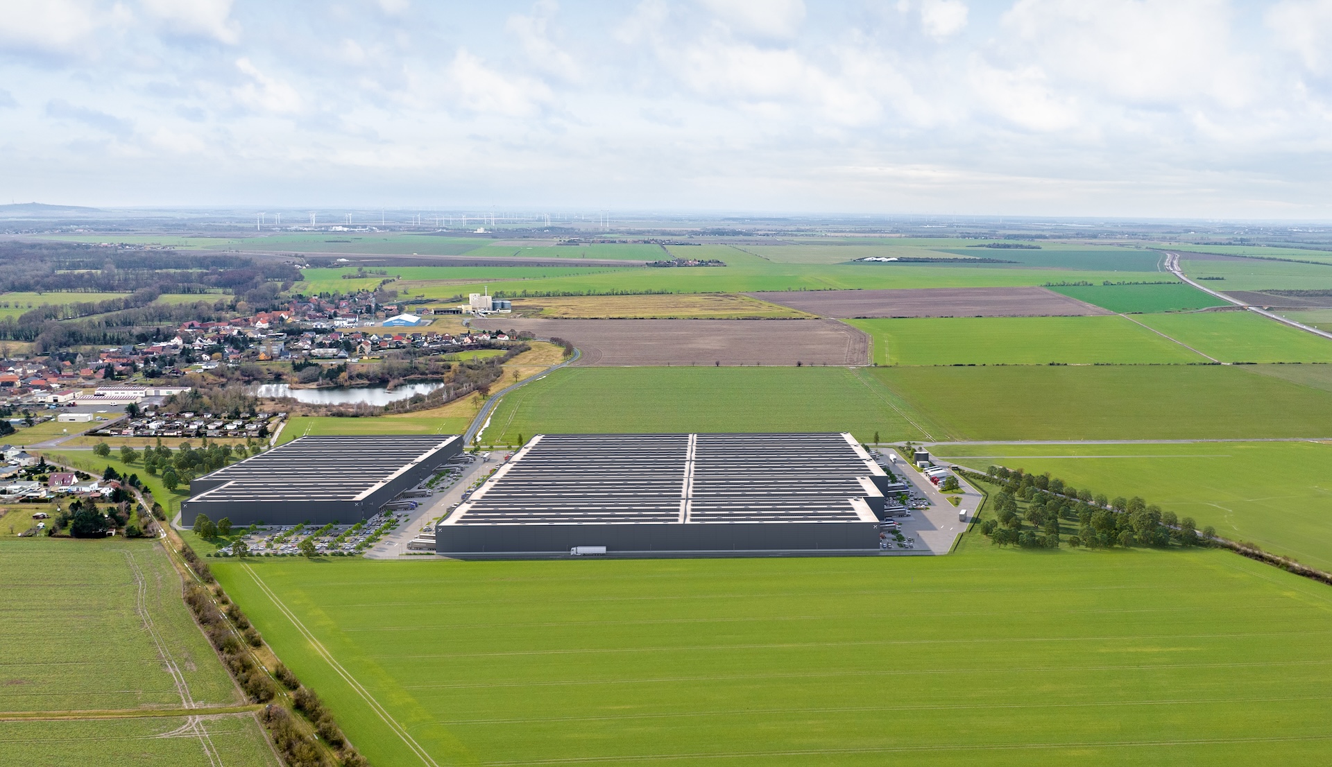 The development is designed to meet the requirements of medium to large companies in retail, e-commerce, and light production. Construction is scheduled to start at the end of 2025 and will be realized in three phases. Each hall can be divided into several units, allowing flexibility for different operational setups.